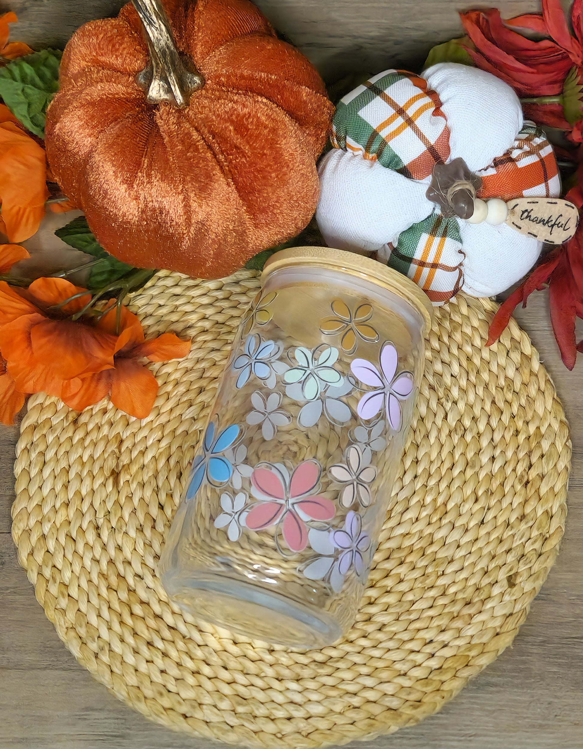 Fall Flower 16oz. Glass Cup
