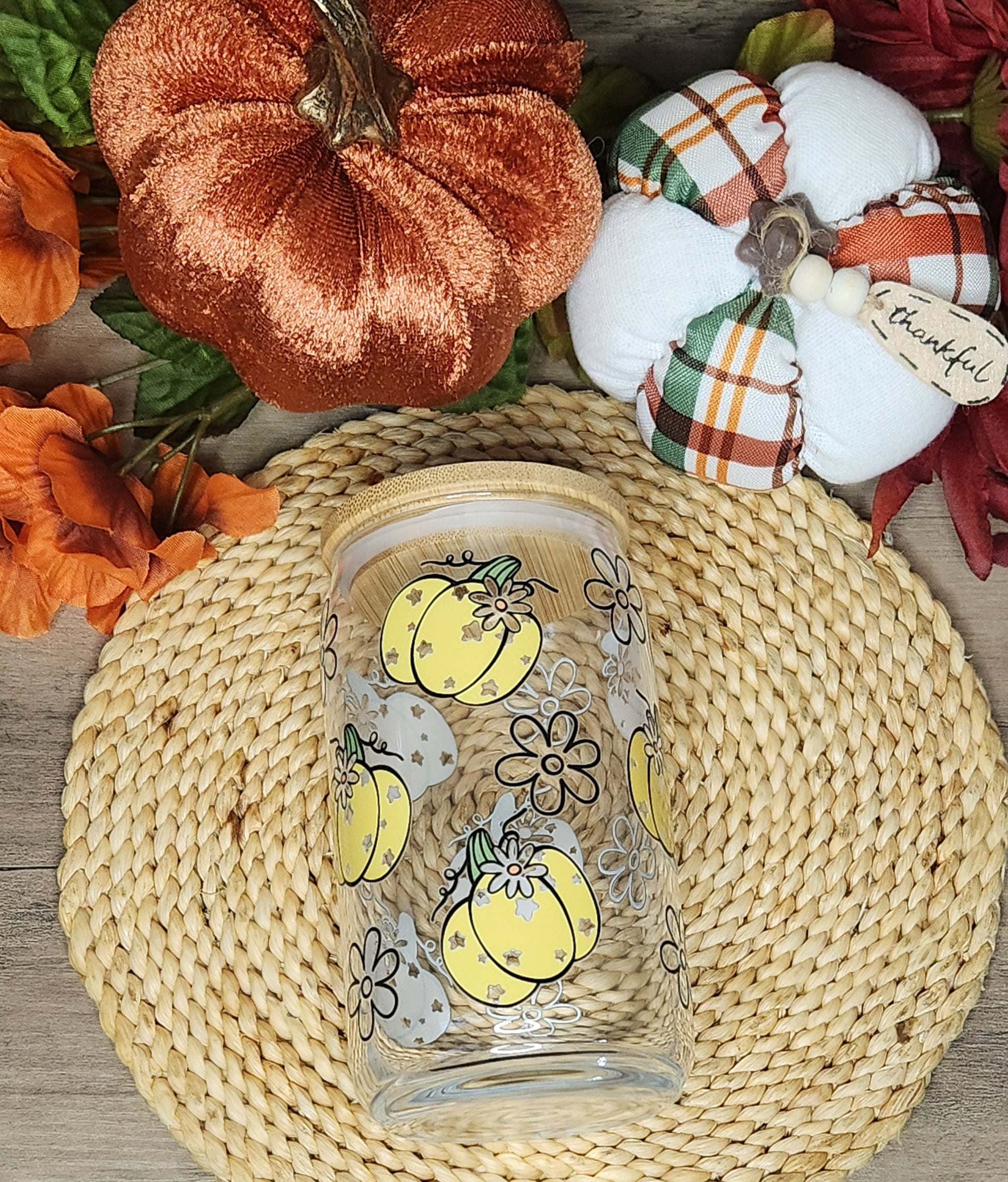 Yellow Pumpkin 16oz. Glass Cup